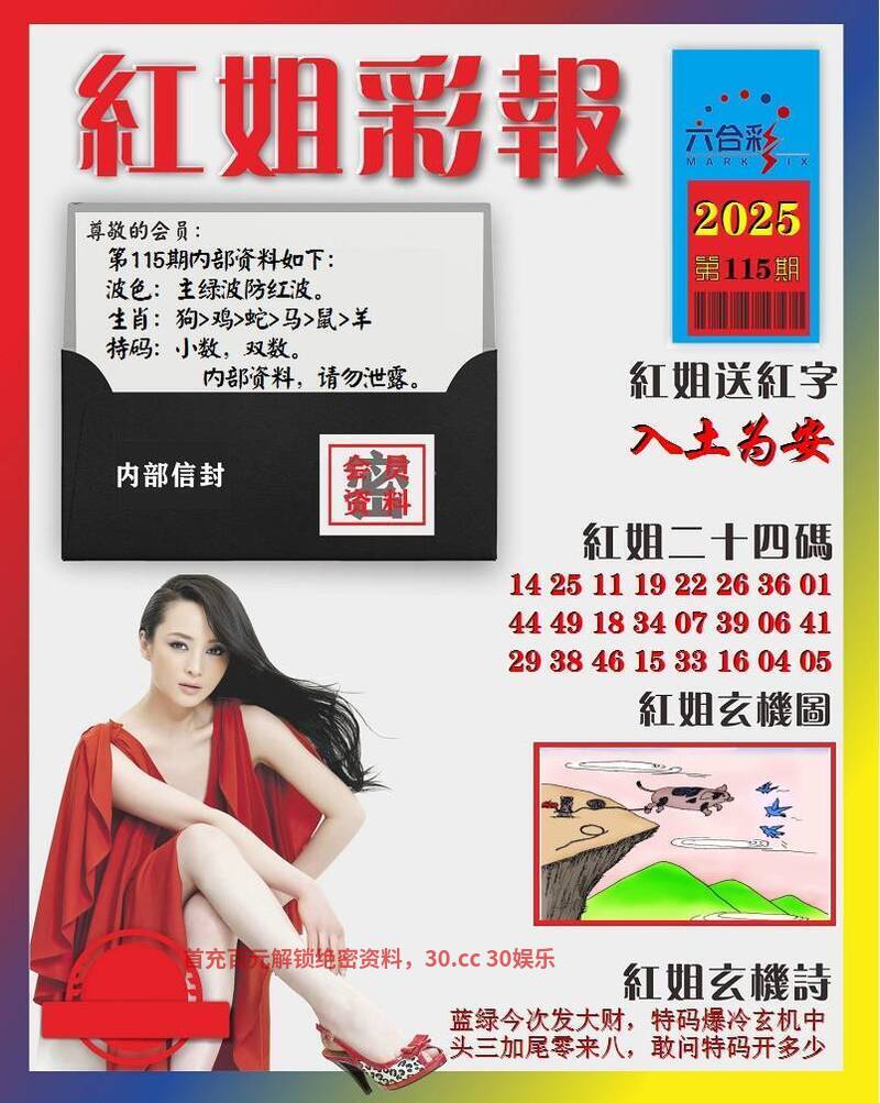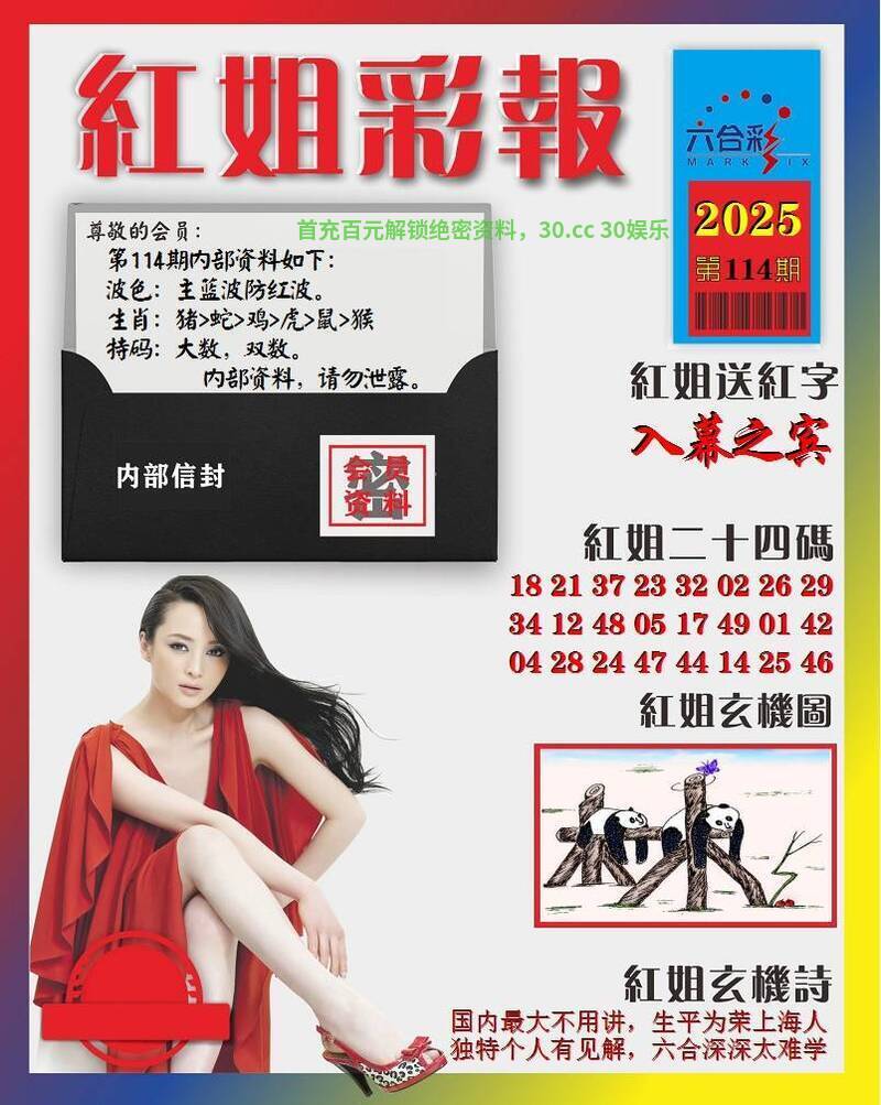 | 114期红姐彩报:【入幕之宾】 解:指参与机要的人。也泛指亲近的人或幕僚。 综合生肖:鸡马牛兔狗蛇 |